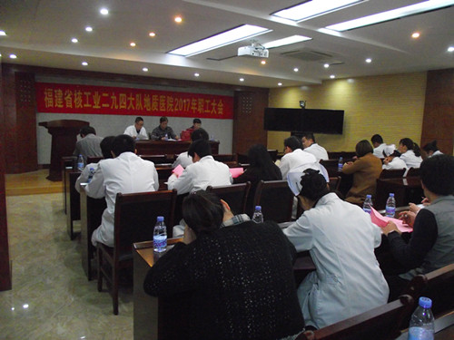 2017年4月27日(星期四)下午,福建省地质医院2017年度职工大会在行政大楼二层会议厅举行。会议由院党书记钟美昌主持。院领导姚智开、林通等出席了会议,院职工代表以及各行政、临床科室负责人共58人参加了会议。