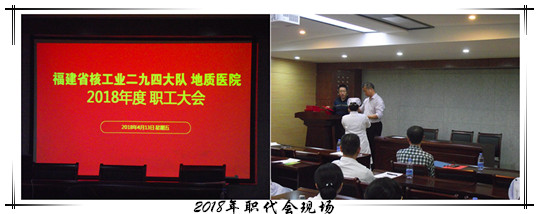 4月13日(星期五)下午,福建省核工业二九四大队地质医院“2018年职工大会”在行政大楼二层会议厅顺利召开。大会由副院长钟美昌主持。院领导姚智开、林通等出席了会议。职工代表与特邀列席代表共54人参加了会议。