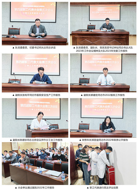 会议传达了核工业二九四大队2023年工作会精神、2023年党委工作报告、2023年党风廉政建设工作报告及安全生产工作报告,全面回顾了2022年以来医院的各项工作,分析了医院发展存在的短板和面临的挑战,详细阐述了2023年医院发展的总体思路、目标任务和重要举措。