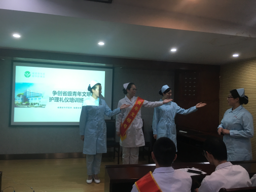 2018年10月31日(星期三),我院争创省级青年文明号护理礼仪培训班在三号楼学术厅举行。培训班邀请福州市第一医院辛丽、蔡文晶、郑娜、郑云娟4名内训师进行《护士基础礼仪》授课。医院外科一区争创省级青年文明号集体以及各科室护理人员参加了培训。