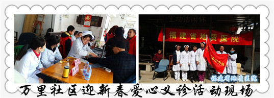 按照福建省直机关精神文明建设领导小组办公室转发《省文明办关于在春节期间广泛开展学雷锋志愿服务活动的通知》的要求,我院结合实际,与仓山区对湖街道万里社区联手,于2月12日(星期一)上午在该社区开展“春节送健康、义诊暖人心” 学雷锋志愿服务活动。
