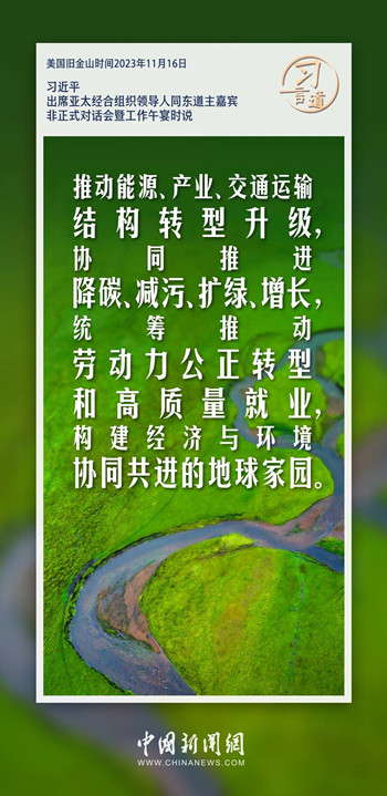 当地时间11月16日中午,中国国家主席习近平在旧金山出席亚太经合组织领导人同东道主嘉宾非正式对话会暨工作午宴。习近平指出——