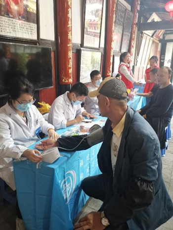 医院抽调心脑血管、消化、呼吸及护理部等科室的专家医护人员组成义诊志愿服务队,为近百名当地群众测量血压、血糖,开展常见疾病的健康科普,进行人工呼吸、心肺复苏等急救演示,受到了当地群众的和好评。
