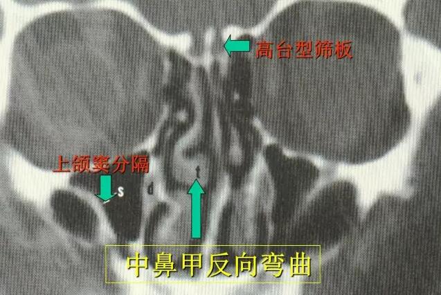 中鼻甲解剖变异:中鼻甲反向弯曲