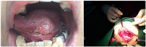 患者吴XX,女性,泉州籍,59岁,发现舌根一肿物并溃烂5月余,就诊我院耳鼻咽喉头颈外科。患者于舌根背面见一3.0X2.5cm大小肿物,肿物表面溃烂。 入院后进行了术前检查,肿物活检示:“舌高分化鳞状细胞癌”,彩超提示:“颏下及颌下多发淋巴结,余检查未见无异常”。经过详细周密的手术方案的制定,决定给患者实施“预防性气管切开+舌根恶性肿瘤切除+舌骨上淋巴结廓清+颈部淋巴结廓清+颊部带蒂粘膜瓣转移修复”。