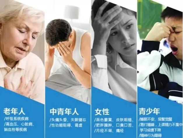 3、精神行为异常:注意力不集中、精细操作能力下降、记忆力和判断力下降,症状严重时不能胜任工作,老年人可表现为痴呆。夜间低氧血症对大脑的损害以及睡眠结构的改变,尤其是深睡眠时相减少是主要的原因。