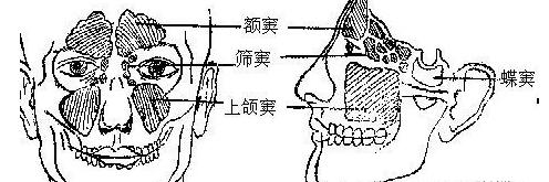 先简单介绍一下鼻窦,鼻窦包括4对骨质腔,分别是上颌窦、蝶窦、筛窦和额窦,4对鼻窦加上鼻腔就好比是一个“四室一厅”的房子。