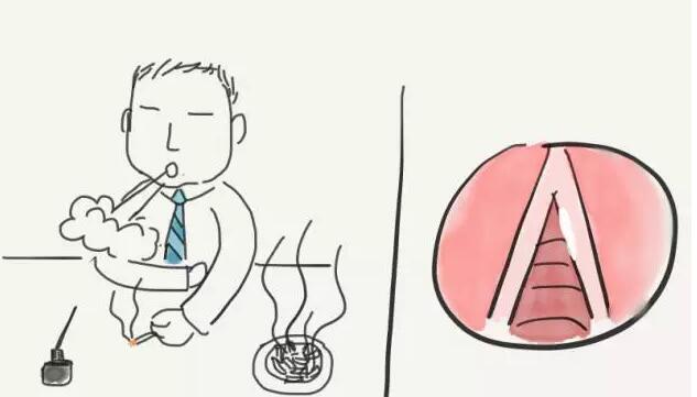 下面以漫画的形式介绍吸烟与喉癌及癌前病变之间的关系。