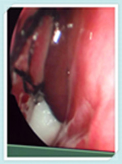 患者曹某某,云南省红河哈尼族彝族自治州人,女性,31岁,以反复右鼻出血4天,伴回吸性痰中带血就诊我科,门诊电子鼻咽镜下见患者右侧中鼻道、总鼻道见一黑褐色物阻塞,呈蠕动状态。