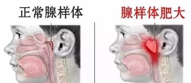 腺样体位于鼻咽顶部,即鼻腔后面,咽的上面,是一团淋巴组织。正常情况下,小孩2~10岁是腺样体肥大时期,6岁时长到最大,10岁以后开始萎缩,到13岁左右就消失了。但也有一定比例的儿童到了青春期后腺样体仍不萎缩。