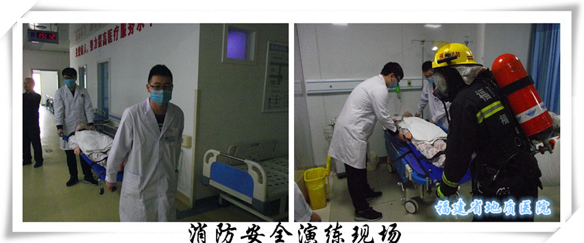 演练以住院部内科楼层内某个病房人为制造火警信号,医院行政总值班接到火警信号后,立即通知保安及消控室人员迅速到场查看,确认火警,立即启动消防应急预案、迅速启动消防联动设备,并根据着火情况拨打119(模拟)。